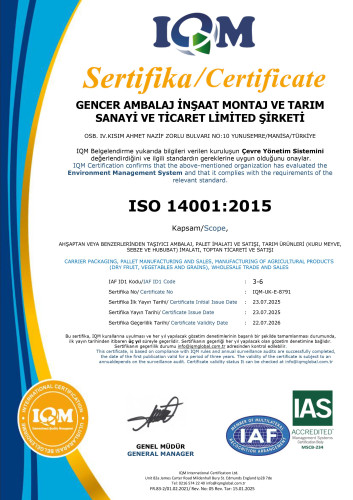 Bu kapsamda aldığımız ISPM 15, ISO 9001 – Kalite Yönetim Sistemleri sertifikaları bunlardan bazılarıdır.