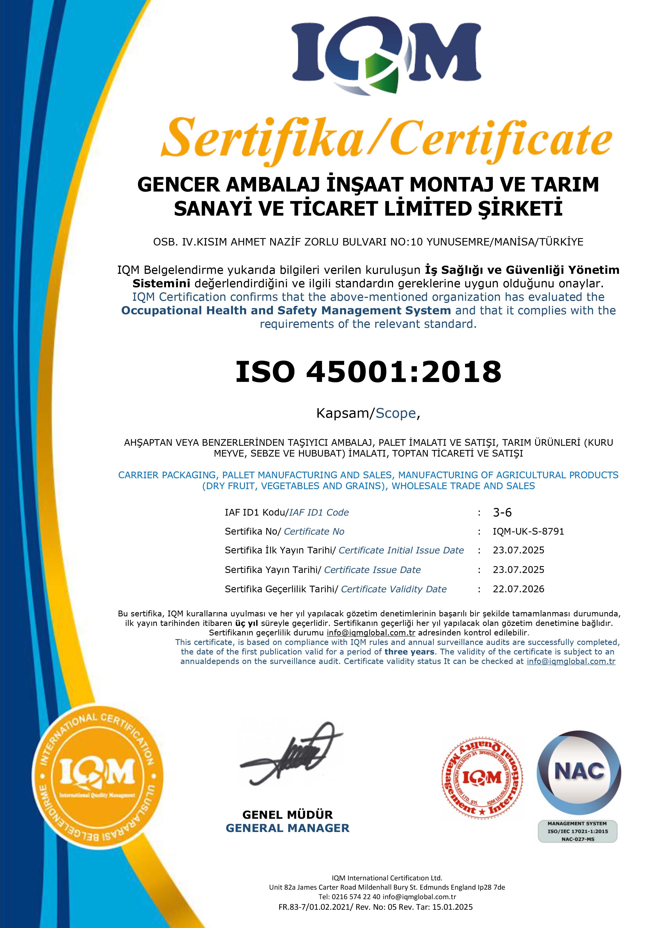 Gencer Ambalaj, ISO 45001 ışığında çalışma ortamlarında alınan tedbirlerle, işletmeyi tehlikeye sokabilecek olası tehlikeleri en asgari düzeye indirerek, işletme güvenliğini sağlar ve güvenlik kültürünü güçlendirir.